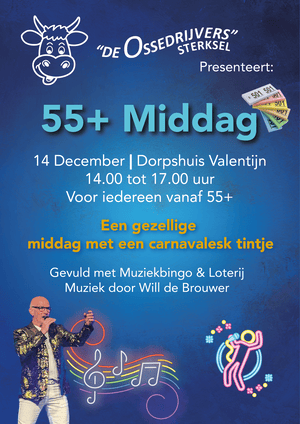 Op Zondag 14 December is het weer zo ver! De gezellige 55+ middag van CV de Ossedrijvers.