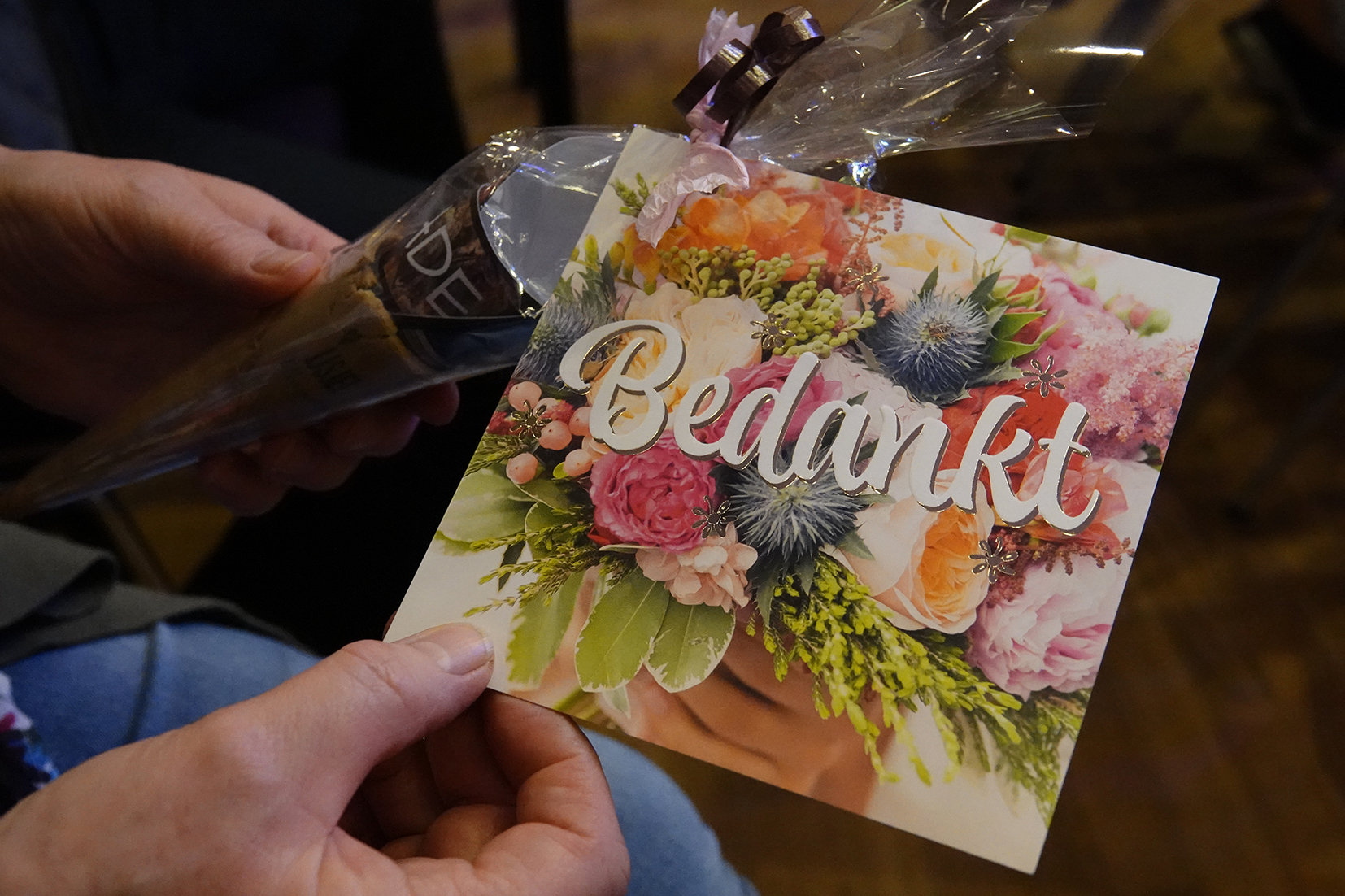 Jaquot, een lid van Goed Gestemd, sloot af met een bedankwoordje voor Henk van Moorsel die een biertje van fanfare St. Nicasius kreeg aangeboden. Ook Ans en Netta werden bedankt namens de groep "Goed Gestemd" voor hun inzet van de afgelopen periode.