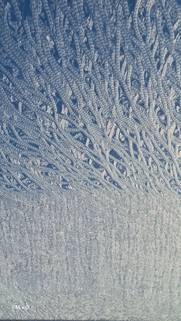 Gisteravond laat bij thuiskomst was ook het autodak flink bevroren, zo erg dat dit prachtige ‘veren’-patroon verscheen.