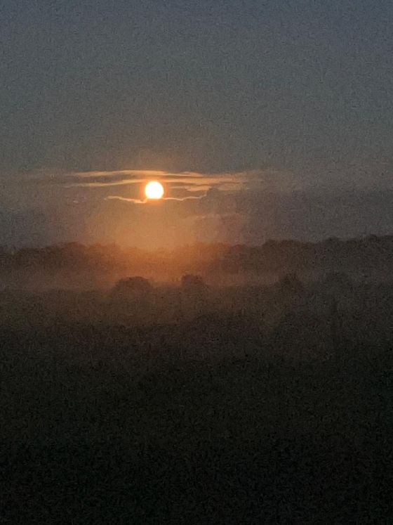 Twee dagen na de bloedmaan laat de maan zich nog steeds van de mooiste kant zien met het licht over de weilanden